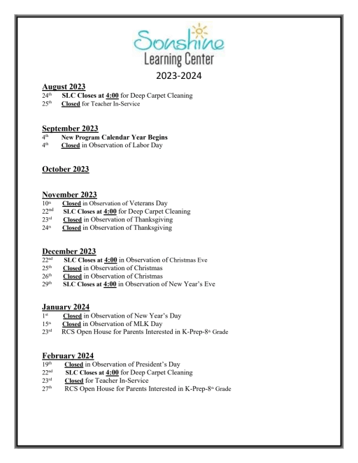 Calendar Renton Christian School